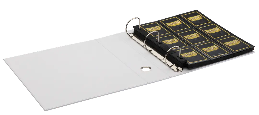 Le cadre rigide et élégant abrite un classeur robuste et permet de gagner de la place sur votre étagère. Il permet en effet de stocker une quantité considérable de cartes, limitant le nombre de classeurs. Les anneaux en D de 50 mm verrouillent vos pages en place